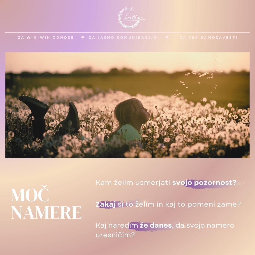 Namero čutim kot majhno seme. V sebi nosi velik potencial, a potrebuje prostor, čas in nego. Če hranim misli, ki me utrujajo, bodo rasle in z njimi bo rasla utrujenost. Če pa zavestno zalivam tisto, kar želim krepiti – hvaležnost, pogum, mir – bodo prav te kvalitete pognale korenine. Moč namere je v tem, da znova in znova izberemo, kaj sejemo. Kar zalivaš, to raste. Ključna je potrpežljivost. Ne moremo vleči rastline za liste, da bi rasla hitreje. Lahko pa vsak dan poskrbimo za svetlobo, hranila in dovolj nežne pozornosti – vse ob svojem času.