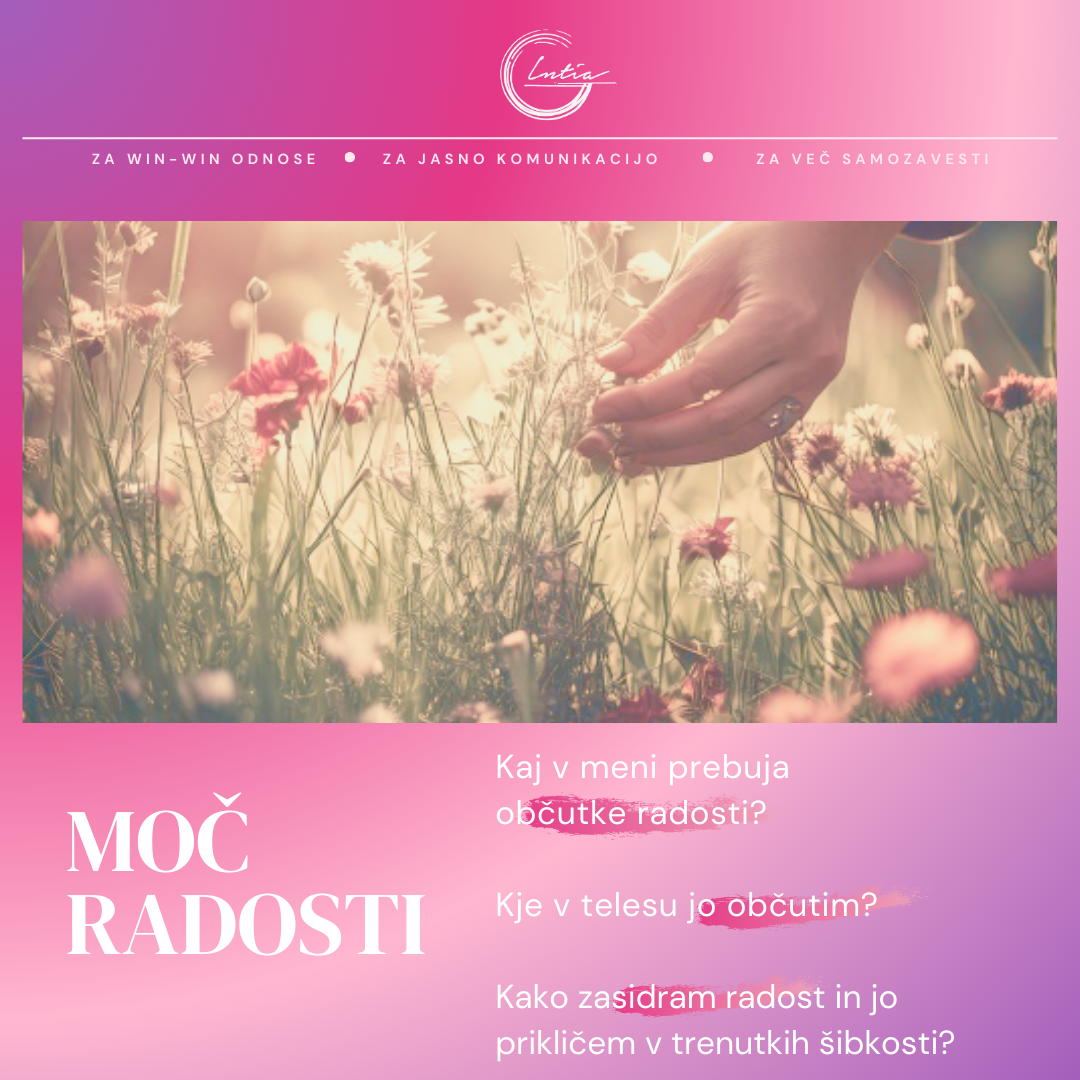 Radost je nežna in obenem močna sila – nahrani naš notranji svet, nas vrača v stik s seboj in nas spomni, zakaj smo tukaj. Ko smo v stiku z radostjo, življenje ne deluje več kot nepregleden seznam nalog, temveč kot prostor izkušanja, občutenja in osebnega smisla. Takrat ne potrebujemo nenehnega potrjevanja, saj nas vodi občutek, da smo živi in povezani. Prav zato je pomembno, da z mislimi ne hranimo tistega, kar nas izčrpava, temveč tisto, kar nas vrača v stik z notranjim virom.